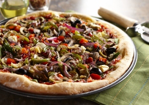 Τα λαχανικά που χρησιμοποιούμε είναι κρεμμύδι, μανιτάρια, πιπεριά, ντομάτα, ελιές.